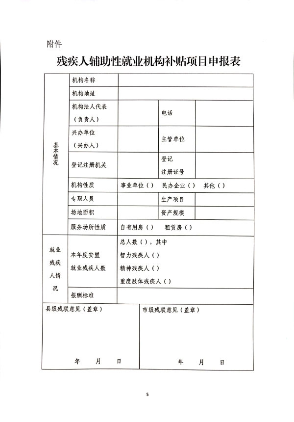 1.《残疾人辅助性就业机构补贴项目申报表》;